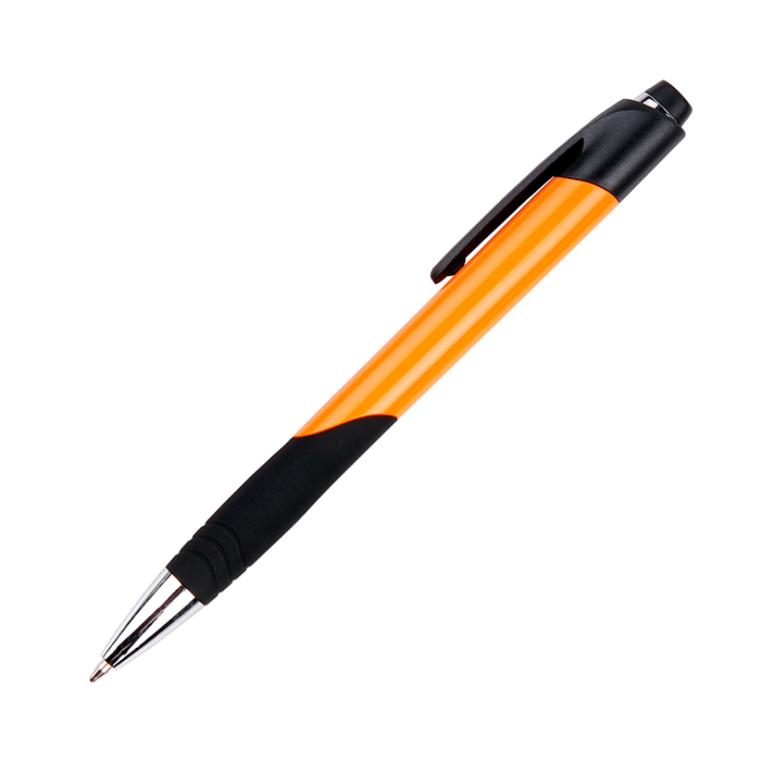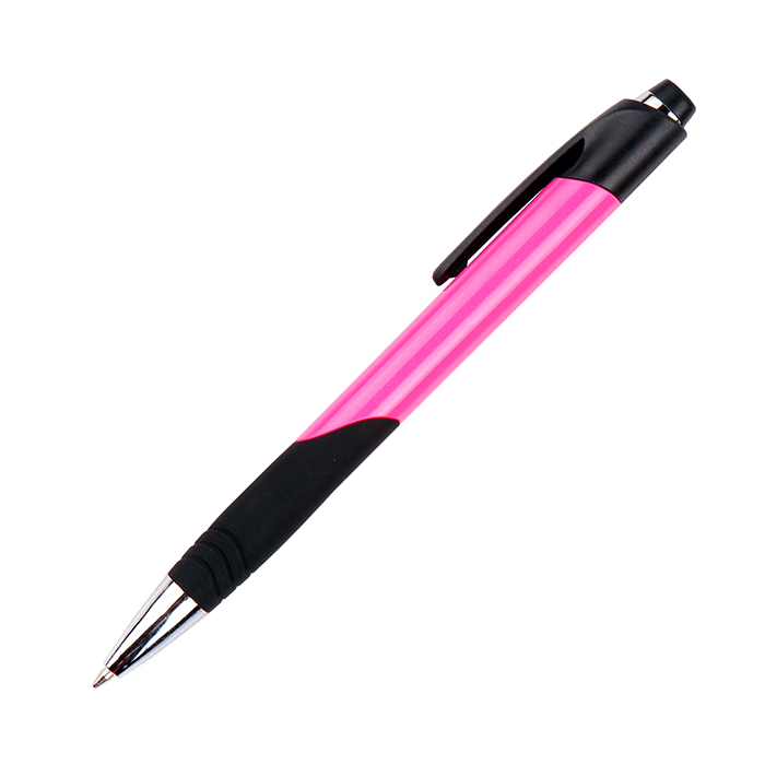 Bolígrafo de plástico y tinta negra. Medidas: 14×1.1 cm. Area de impresión: 4×1 cm. Colores: Naranja, Rojo, Rosa Impresión recomendada: Serigrafía o tampografía.