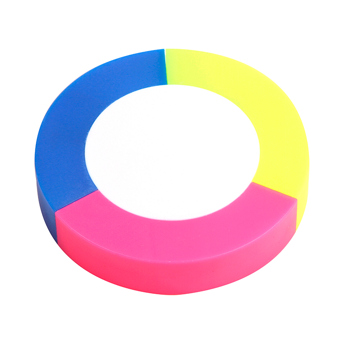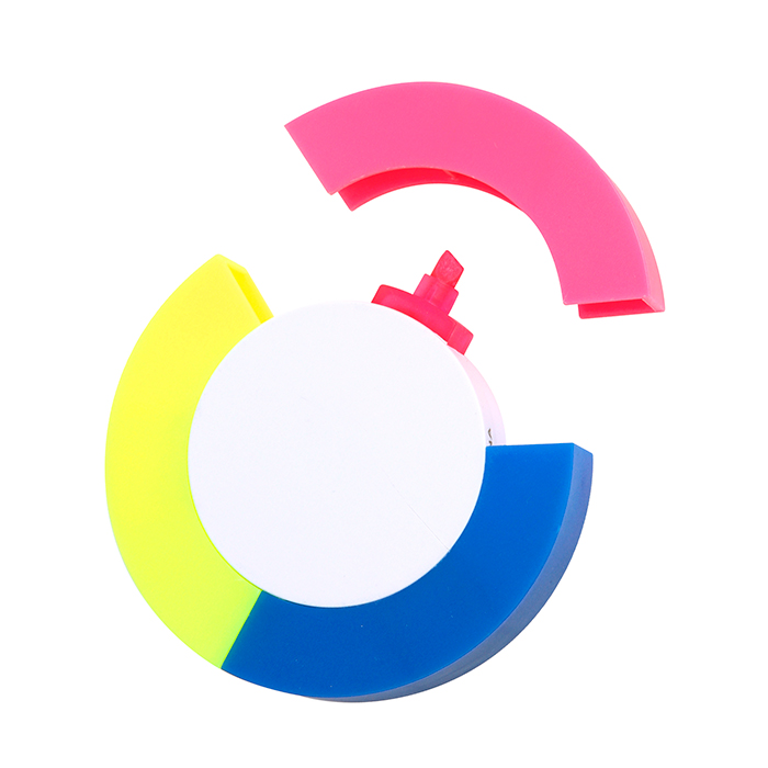 Figura de plástico con 3 marca textos de colores.