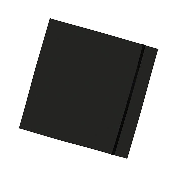 Libreta rígida de cartón negra con 100 hojas blancas y pluma tinta azul, notas adhesivas (50 blancas) y banderitas de colores (125 en 5 colores), interiores en color.
