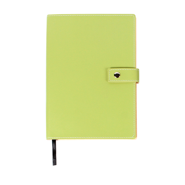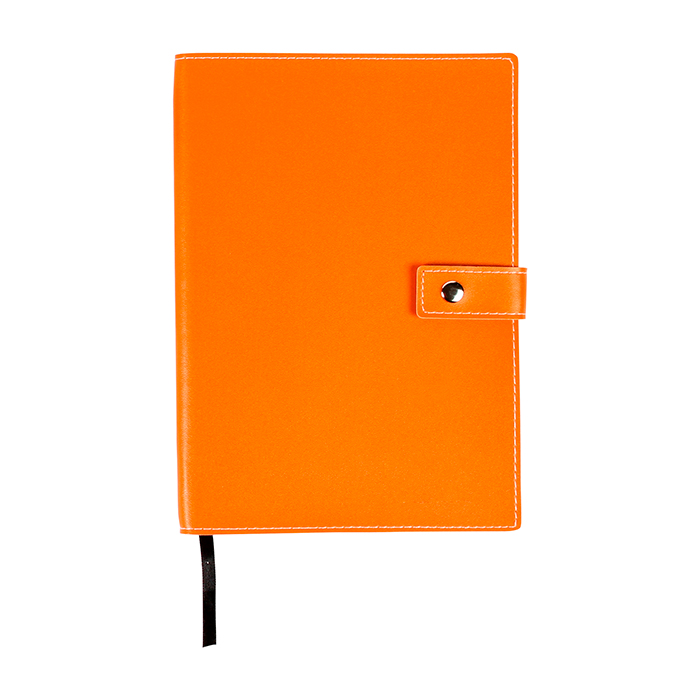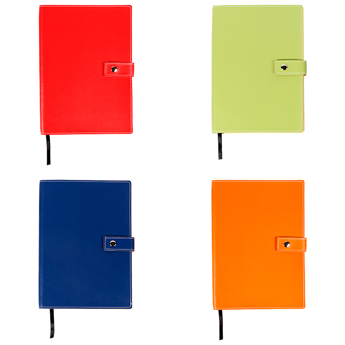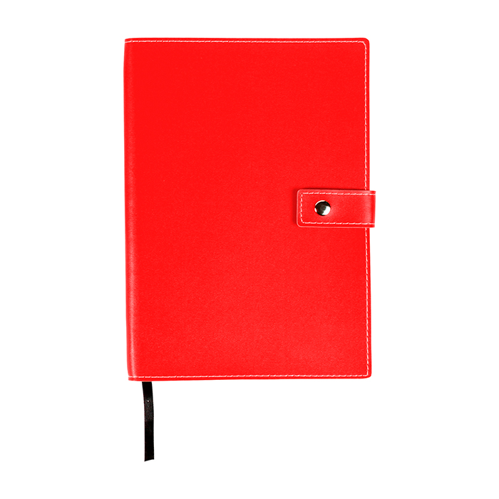 Libreta con broche, 80 hojas de raya tamaño a5 y listón separador de hojas.