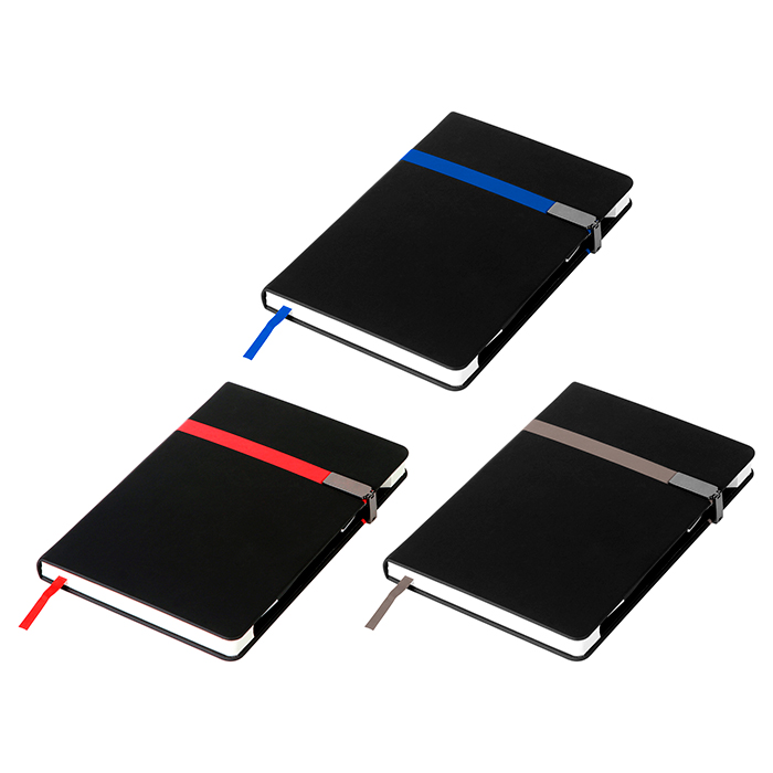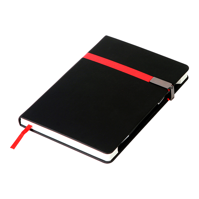 Libreta de pasta rígida y cubierta en curpiel, con 118 hojas de raya, cierre magnético, porta bolígrafo, separador de hojas y placa metálica. no incluye pluma.