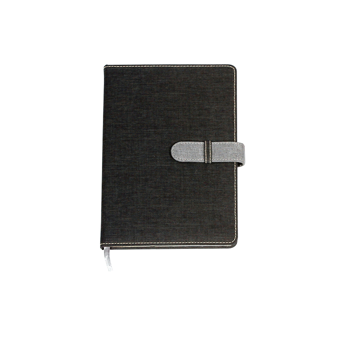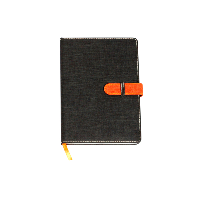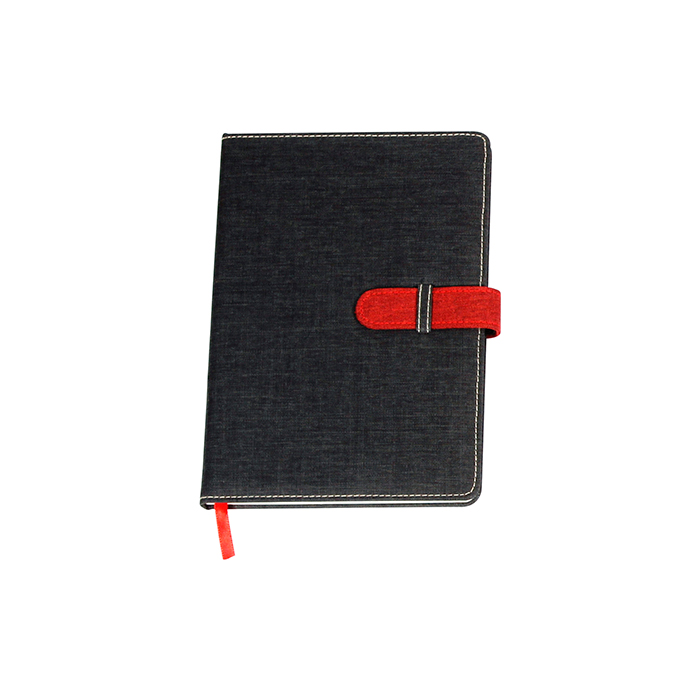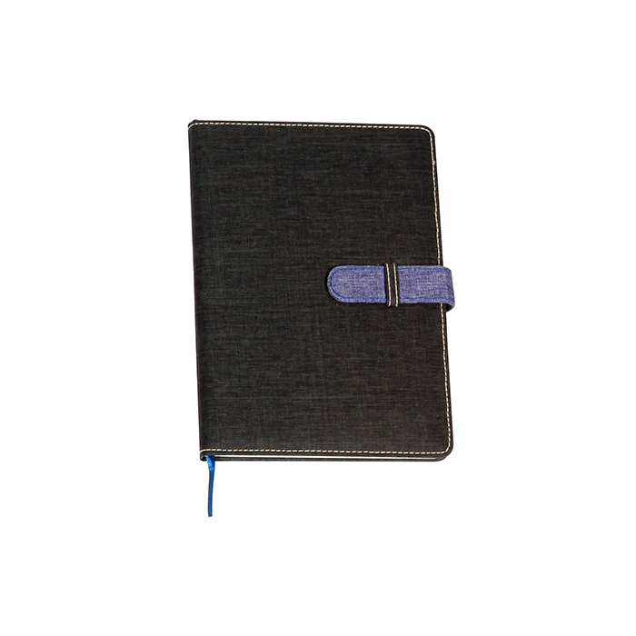 Libreta fabricada en poliuretano con broche y listón separador de hojas, con 80 hojas de raya tamaño a5.