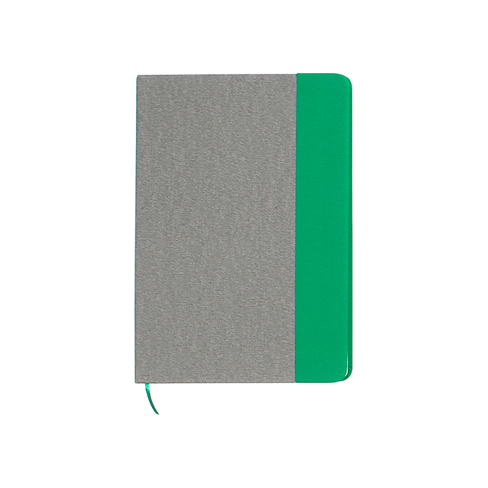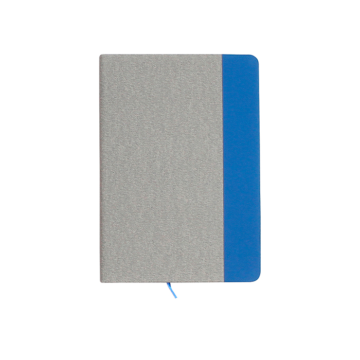 Libreta bi-tono fabricada en pu con listón separador de hojas y 80 hojas de raya tamaño a5.