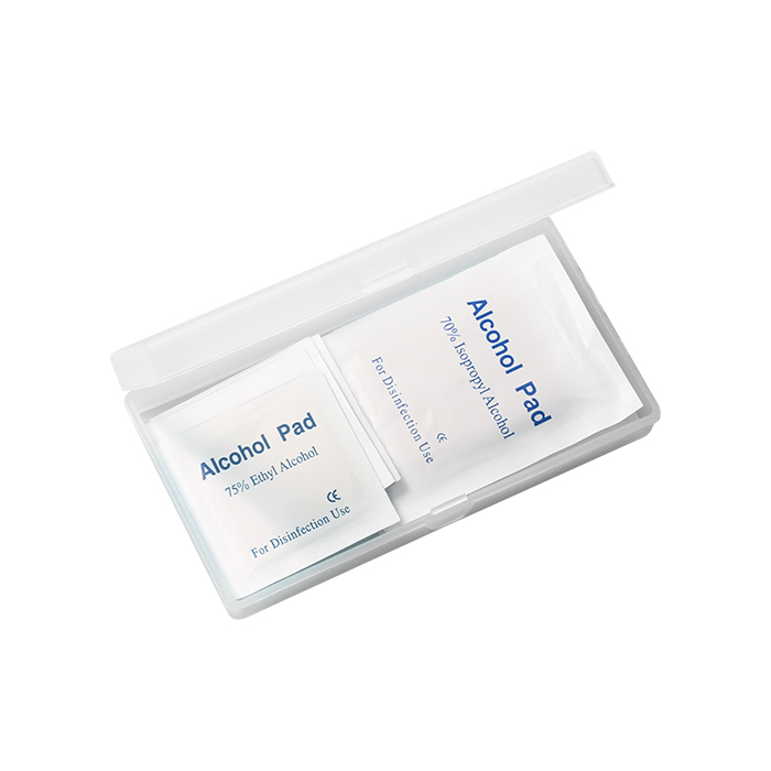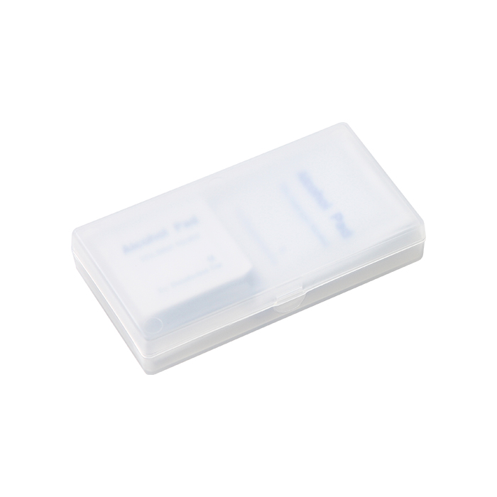 Estuche fabricado en pp, con 15 pads de non woven con alcohol al 75%, 5 pzas. de 10×15 cm. y 10 pzas. 6×3 cm.