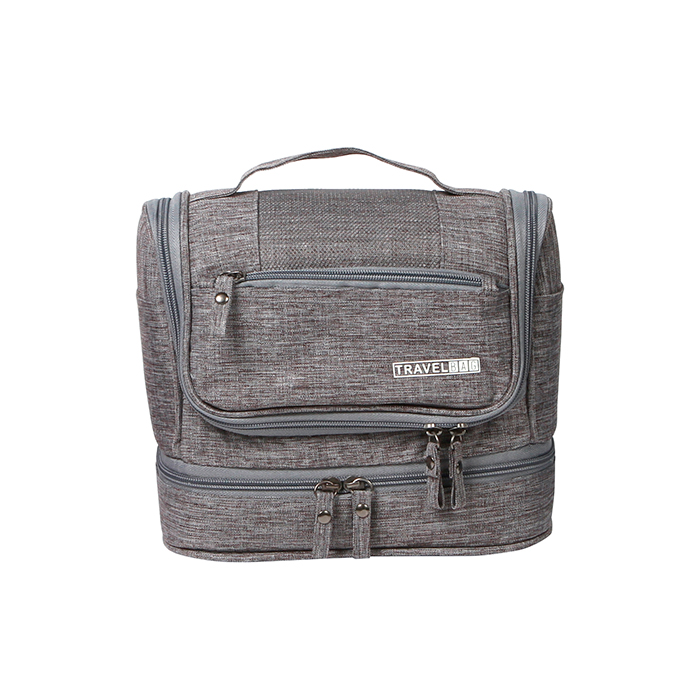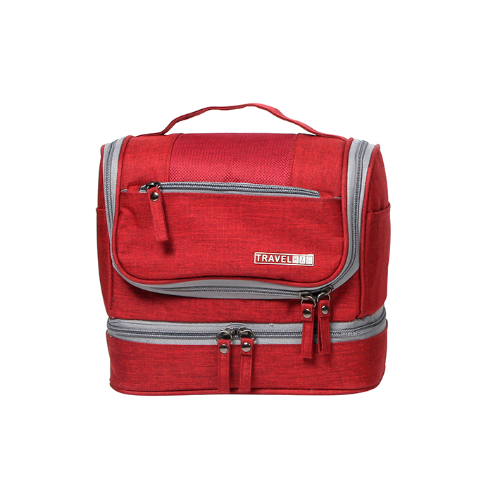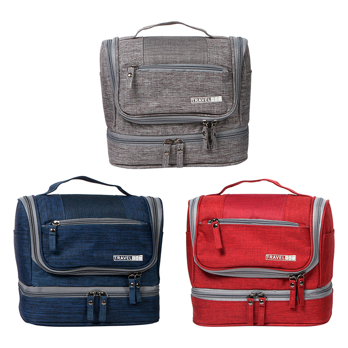 Bolsa multiusos doble fabricada en poliéster desplegable con compartimentos y gancho. Medidas: 22×25 Area de impresión: 5×9 Colores: Azul, Gris, Rojo Impresión recomendada: Serigrafía.