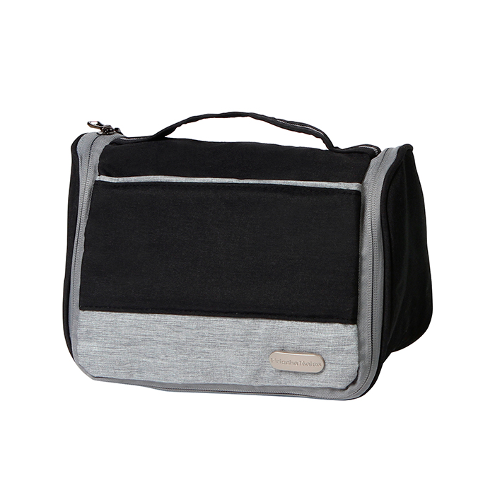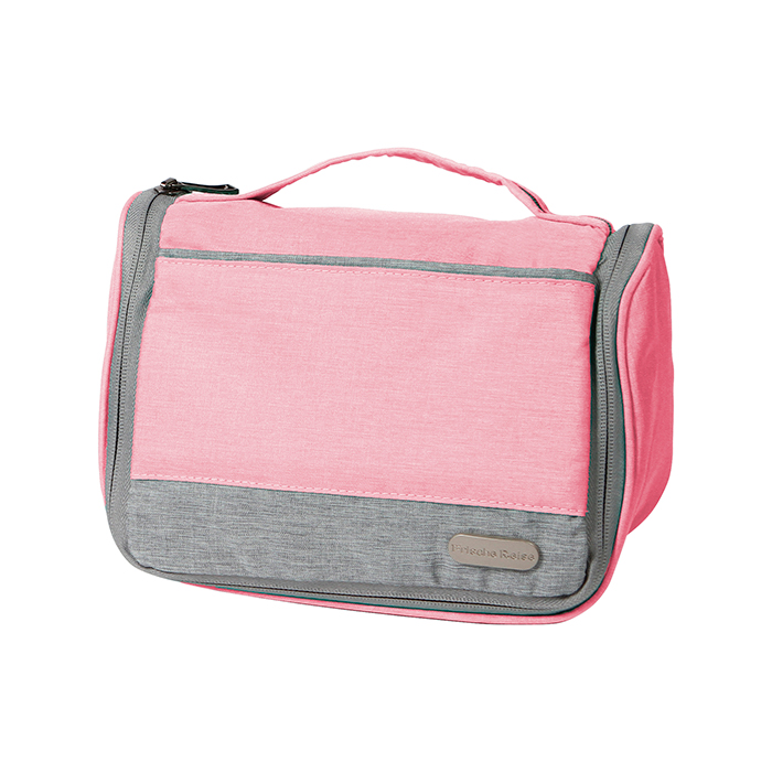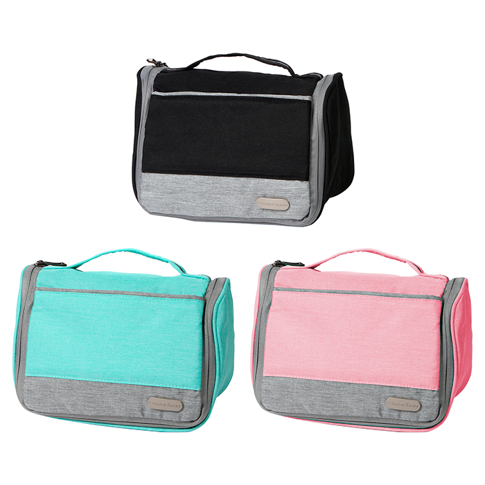 Bolsa multiusos fabricada en poliéster desplegable con compartimentos y gancho. Medidas: 17×24 Area de impresión: 6×15 Colores: Negro, Rosa, Verde Impresión recomendada: Serigrafía.
